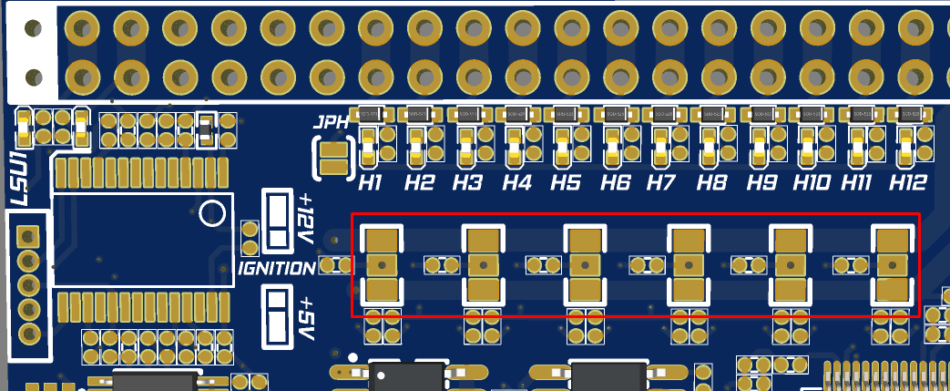 Ignition voltage output: Select the voltage for each pair of ignition output via the jumpers: