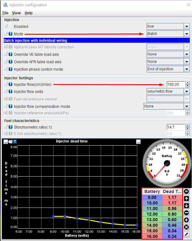 Injector base settings: